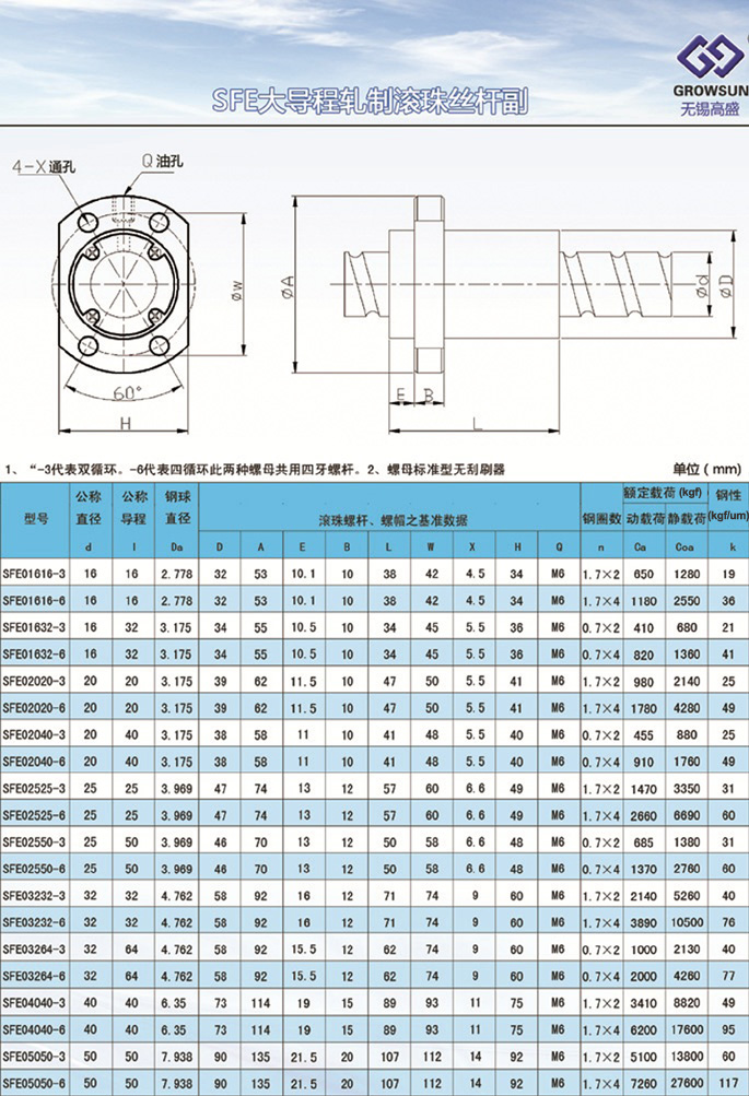 商品名稱:   SFE大導(dǎo)程軋制滾珠絲桿副